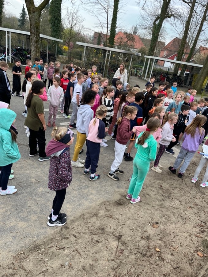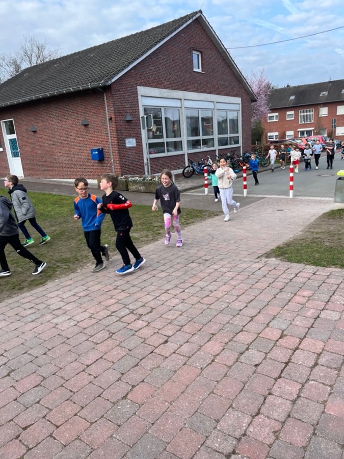 Am 20. März 2026 hieß es für die Marienschule wieder: Laufschuhe an und los! Mit viel Energie und guter Laune liefen die Schülerinnen und Schüler auch in diesem Jahr wieder 15, 30 oder 60 Minuten. Die Runde führte mit motivierender Musik rund um das OGS-Gebäude. Egal, ob sie ehrgeizig auf Bestzeit liefen oder ganz entspannt im eigenen Tempo: Alle Kinder gaben ihr Bestes und feuerten sich gegenseitig an. Entlang der Strecke wurde begeistert gejubelt und den Läuferinnen und Läufern immer wieder motivierender Zuspruch zugerufen. Neben der sportlichen Herausforderung stand vor allem der Spaß an der Bewegung im Mittelpunkt.