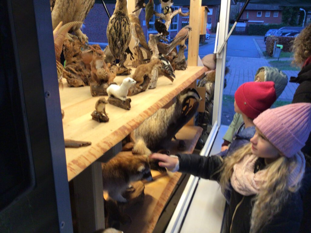 Herr Schürmann, ein erfahrener Mitarbeiter der rollenden Waldschule, stand den Kindern mit seinem Fachwissen zur Seite. Geduldig beantwortete er viele Fragen und gab den jungen Entdeckern interessante Einblicke in das Leben der Waldtiere- und pflanzen.
