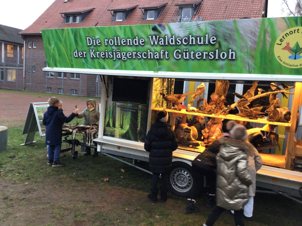 Als besonderes Highlight durften wir nun die rollende Waldschule der Kreisjägerschaft bei uns an der Marienschule begrüßen.