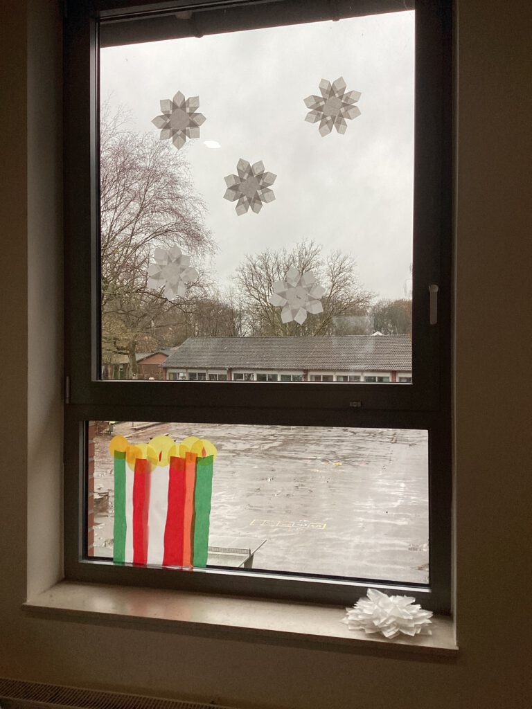 Gemeinsam wurden Fenster und der Weihnachtsbaum im Foyer geschmückt, der nun mit vielen kleinen Lichtern für eine stimmungsvolle Atmosphäre sorgt.