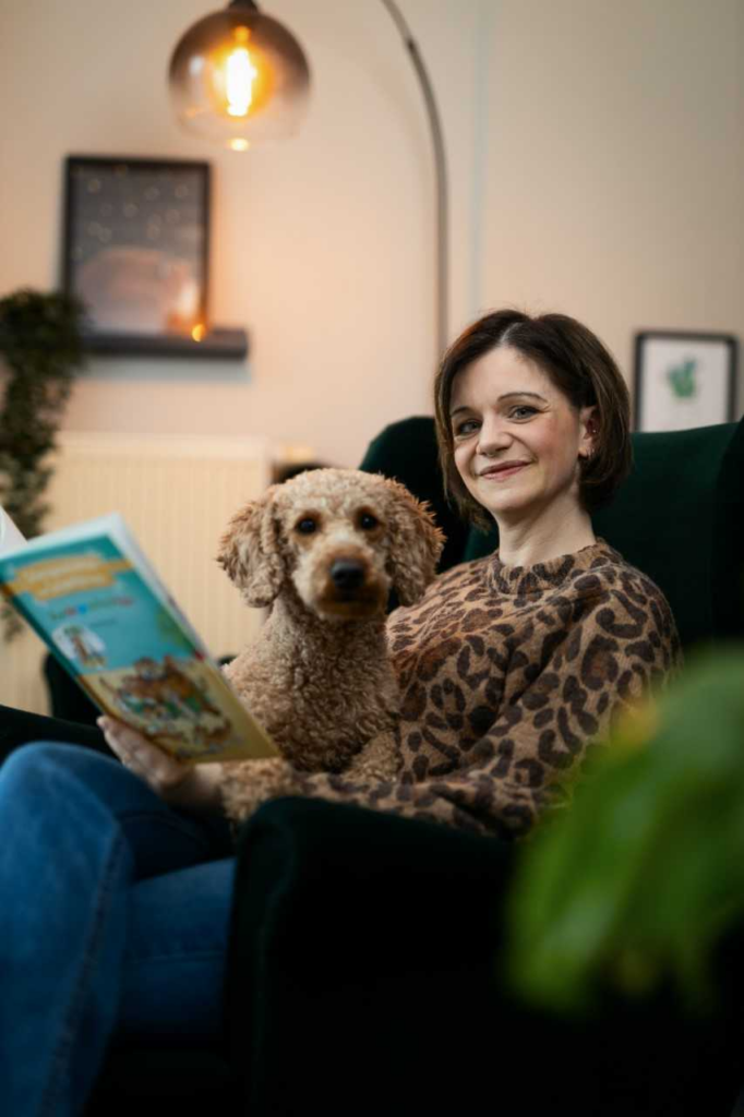 Gemeinsam mit meinem Kleinpudel Bruno begleite ich Kinder beim Lesenlernen.